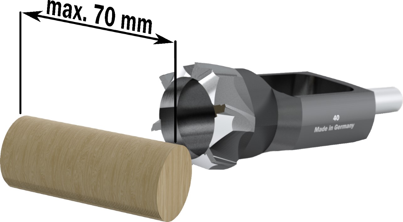 Of course the FAMAG plug cutters are fitted with taper taps so that the resulting plug has an extremely clean edge and is later almost invisible in a drilled hole. The maximum effective length is 70 mm,
