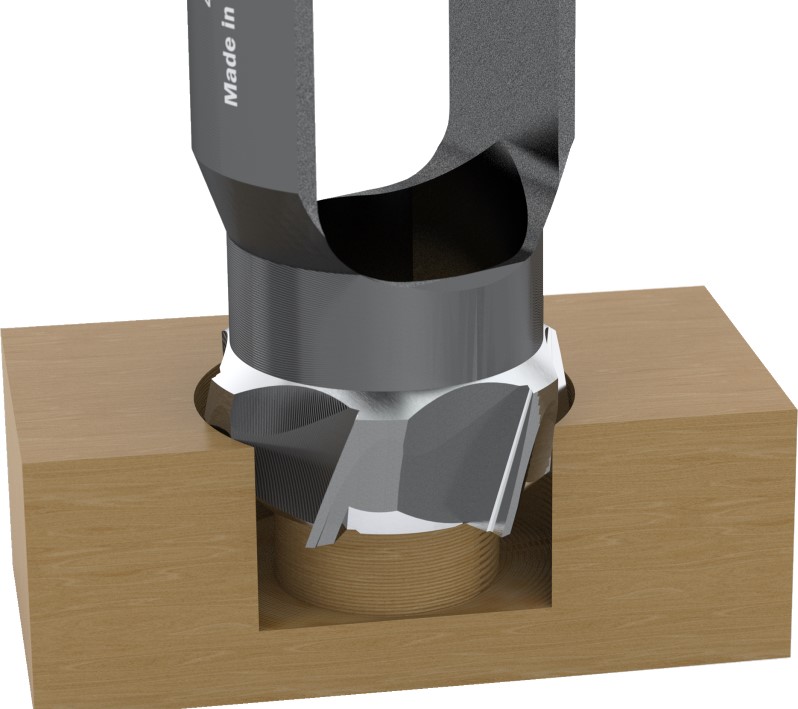And so a clever mind invented a tool that actually consisted of a circular cutting ring. The result was a wooden plug inside the tool. When drilling a knot with a Forstner drill bit for example,