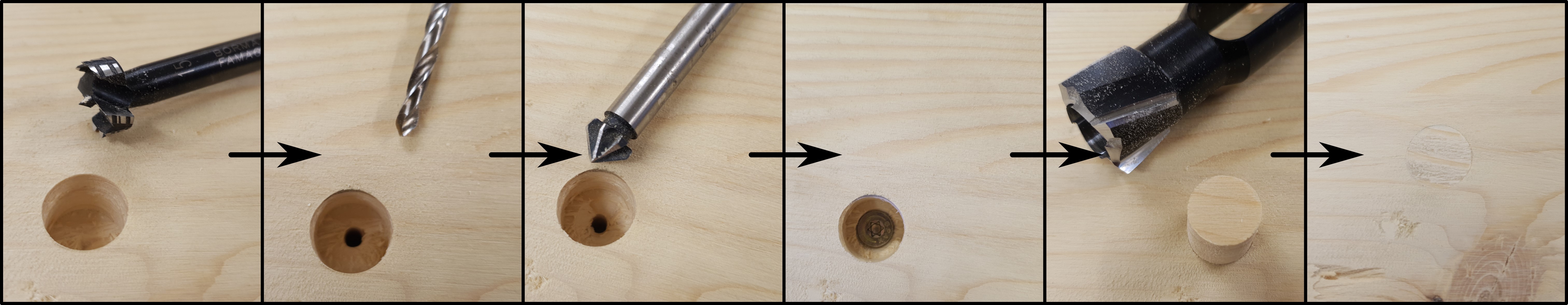 In today’s practice, drillings in wood and wood-based materials are often closed again. For example a hidden screw connection, which shall not be visible afterwards.