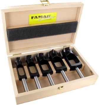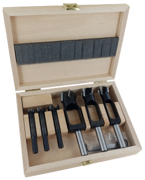 Beside 30 individual diameters in metrical and 7 sizes in INCH, we have different sets in wooden cases in our range. The bestseller is certainly the set of 5pcs with Ø 15/20/25/30/35 mm. But also the set of 6pcs (Ø 15/20/25 mm), a combination of WS Bormax® (alloyed tool steel)/disc and plug cutter is very popular. For all boatbuilders we offer a set of 8pcs with the Ø 6/8/10 and 12 mm, including the disc and plug cutters in the mentioned diameters and our HSS-G brad point drill bits of product line 1594.